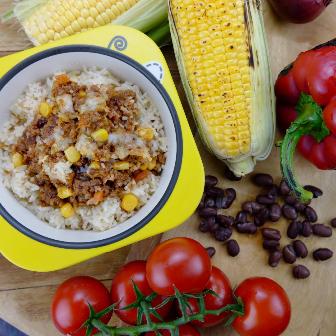 cooked rice (water, rice), tomatoes, canned, beef*, passata, carrot, red onion, sweetcorn, breadcrumbs, red pepper, red kidney beans, celery, tomato ketchup 2.2%, courgette, sweet potato, vegetable oil, Parmesan, tomato puree, mozzarella, garlic, extra virgin olive oil, sea salt, vegetable stock 0.2%, balsamic glaze 0.2%, basil, honey, Dijon mustard 0.1%, Worcestershire sauce 0.1%, cocoa, modified corn flour, cornichons 0.1%, thyme, oregano, cinnamon, black pepper, star anise, Tabasco sauce <0.1%, coriander, smoked paprika, bay leaf
